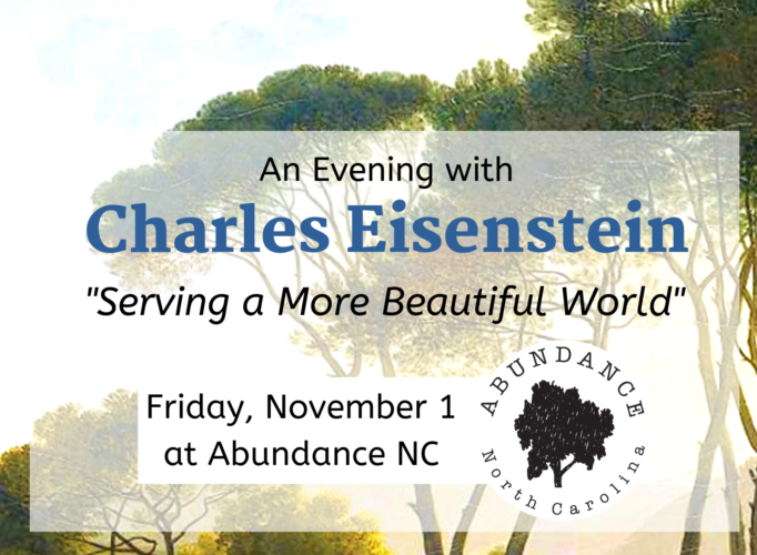Join us in welcoming Charles Eisenstein to Abundance NC for a special evening of learning and discussion around the spiritual work of our times, as we explore how we might navigate grief, endings, beauty amid the shifting consciousness emergent in our modern world.